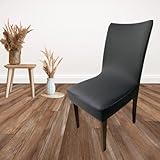 Capa ajustável para cadeira de jantar, proporcionando proteção e revação do visual Cor cinza escuro, adequada para combinar com diversos estilos de decoração Conjunto de 4 unidades, ideal para proteger as cadeiras da sala de jantar>