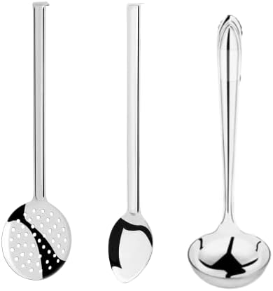 Kit Cozinha Concha + Colher de Arroz + Escumadeira Aço Inox